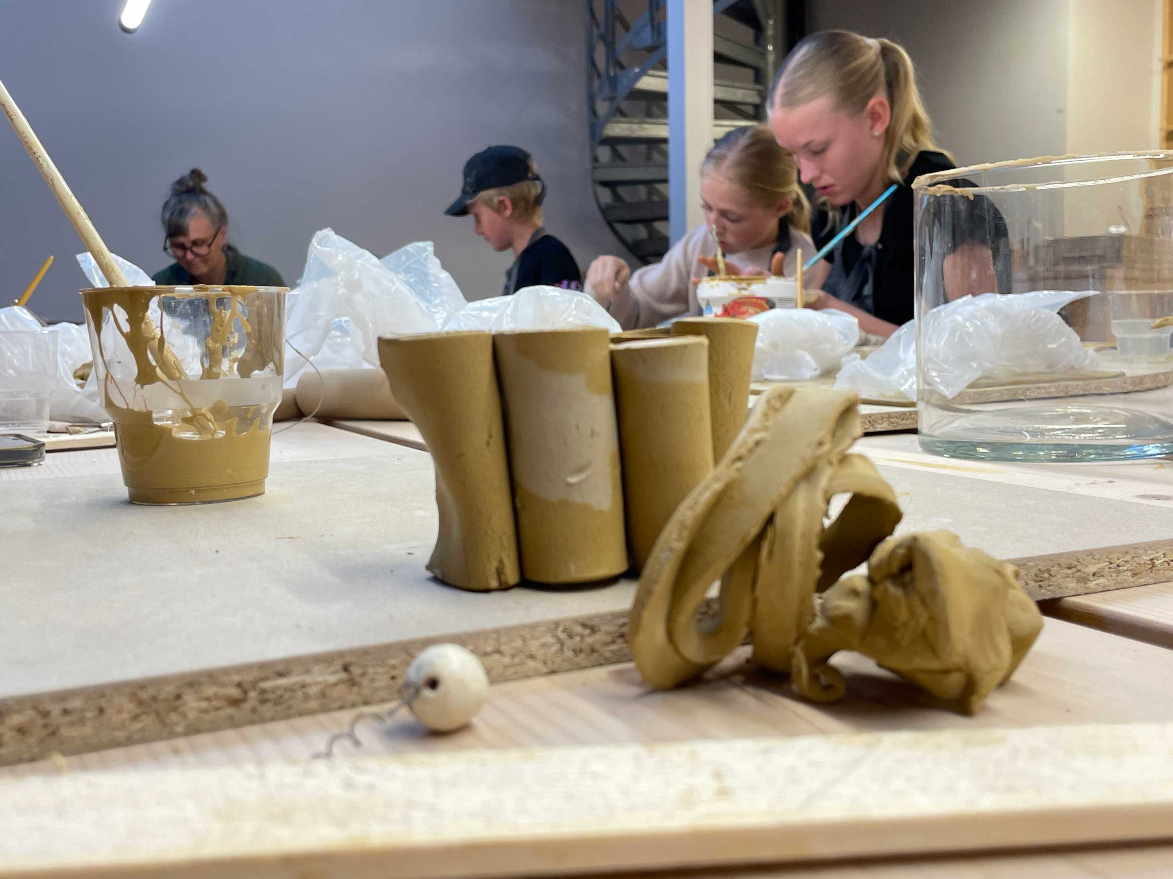 Med inspiration från Masayoshi Oyas utställning Handens berättelser skapar vi egna föremål i lera.